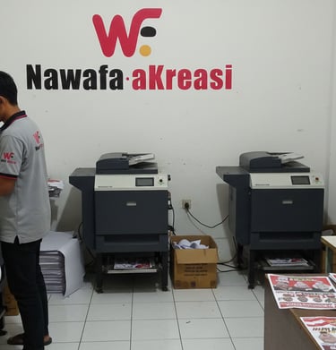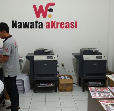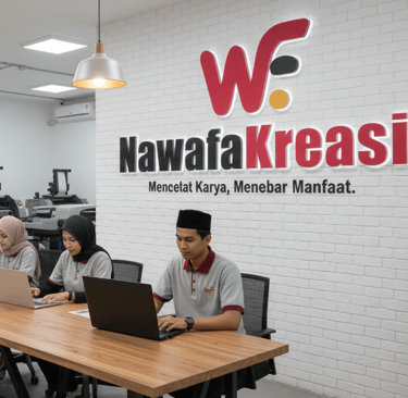 Nawafa Kreasi menyediakan layanan lengkap untuk percetakan, pengurusan legalitas usaha, dan advertising. Kami siap membantu Anda membangun fondasi bisnis yang kuat dan menarik.
